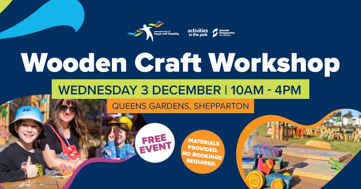 Join us on Wednesday 3 December for a free Wooden Craft Workshop at Queens Gardens Shepparton.